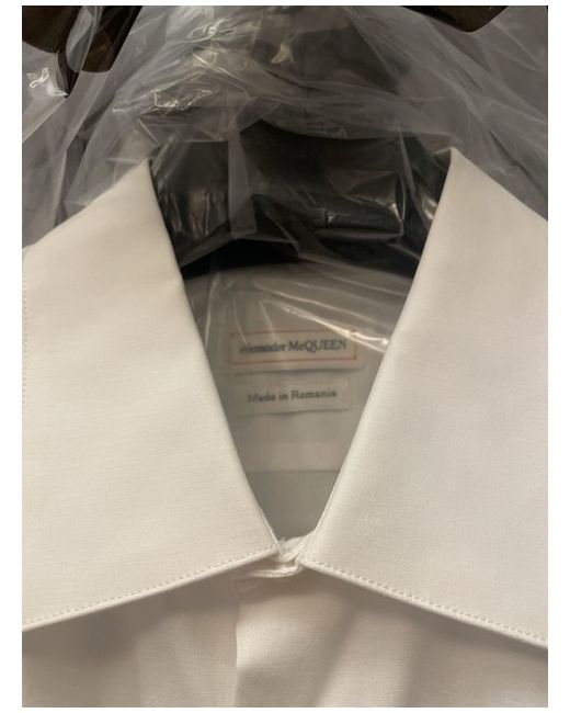 Elevate your formal wardrobe with this Alexander McQueen plain white shirt. Crafted with premium quality cotton and elastane material, this long sleeve shirt ensures comfort and style. The shirt is perfect for men who prefer a classic and elegant look. It comes in size 15++ and is suitable for any occasion. There are 2 identical shirts available in size 15++. Multi-buy offer available.