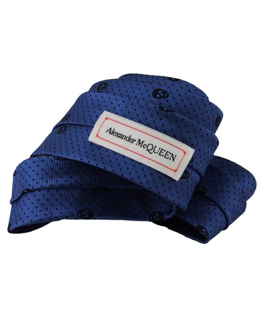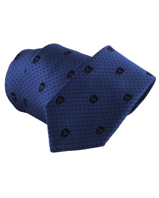 Alexander McQueen Tie Alexander McQueen Skull & Dot Pattern Narrow TieColour: Blue and navy blueMade in ItalyMaterial: 100% silkBlade width: 7 cmAlexander McQueen narrow silk tie in a signature skull and dot pattern.