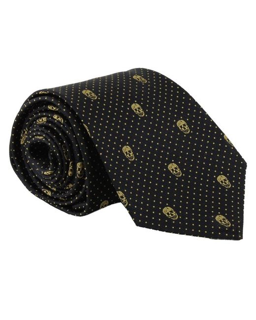 Alexander McQueen Tie Alexander McQueen Skull & Dot Pattern TieColour: Black and goldMade in ItalyMaterial: 100% silkBlade width: 7 cmAlexander McQueen silk tie in a signature skull and dot pattern. Alexander McQueen Skull & Dot Pattern Tie.