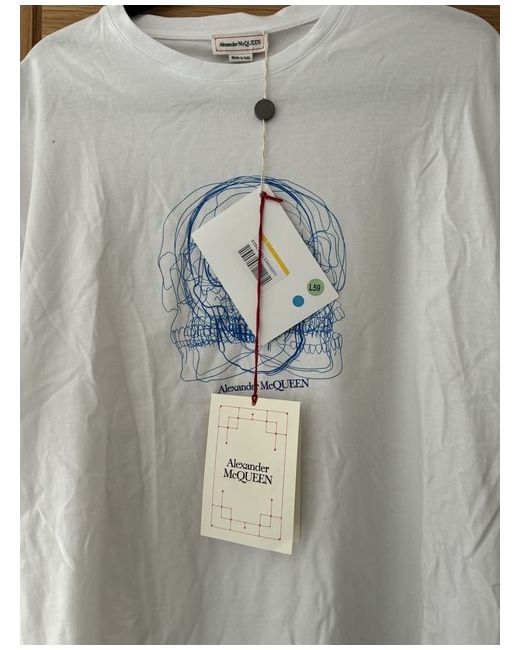 BNWT men’s Alexander McQueen tshirt. White with blue skull print. Size M.