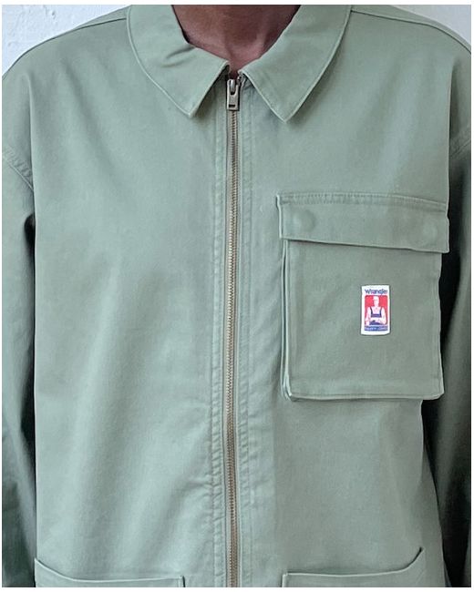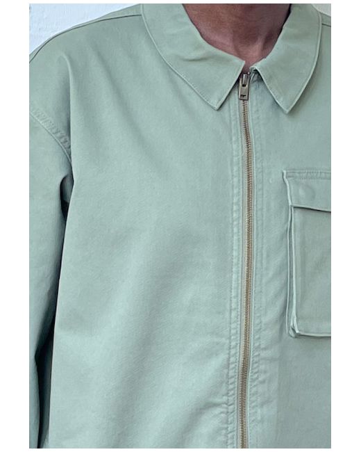 It’s crafted from a cotton blend twill and features an oversized fit, so it can stand on its own or serve as a great base layer for bundling up when the harsh weather hits. Prototype version. Collar: Spread.