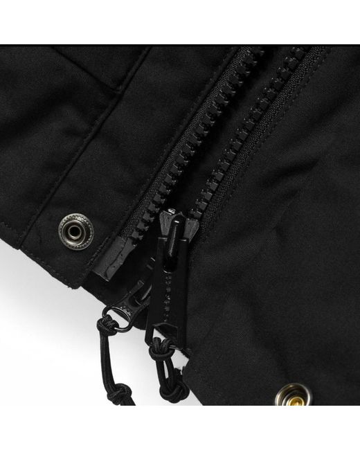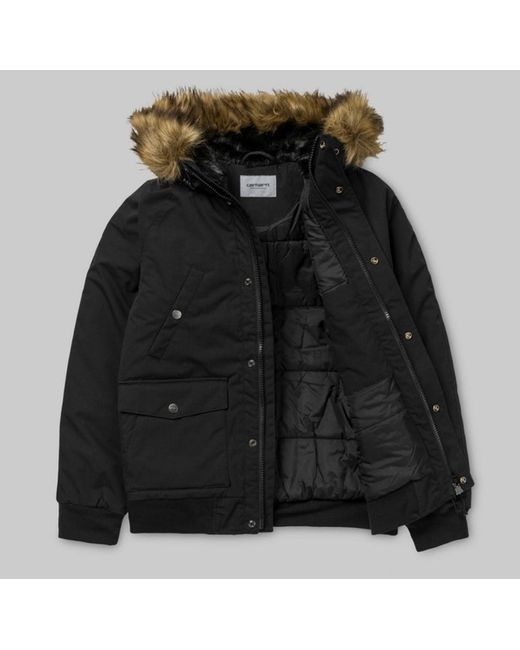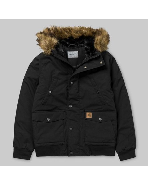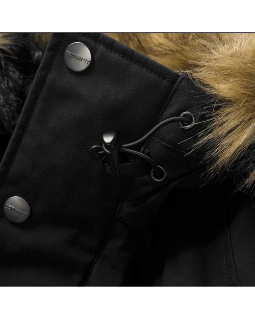Carhartt Trapper Black/Black Size L water repellent fabric coated nylon taffeta lined adjustable hood with pile lining and removable fur rib-knit cuffs and bottom band elbow patch made of Cordura¸ leather square label 65/35% Polyester/Cotton, 5.7 oz Brand new with tags
