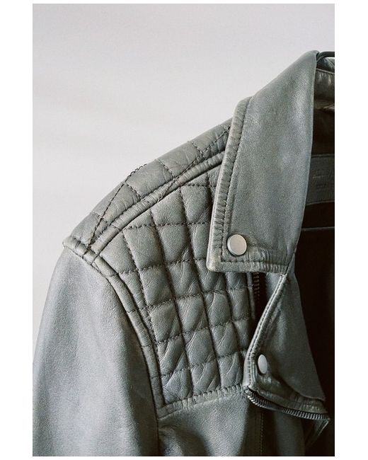 AllSaints Rowley Leather Jacket. Small mark on the back side of the jacket, please see pictures. Size - XS Colour - Grey Dispatched by Royal Mail 2nd Class.