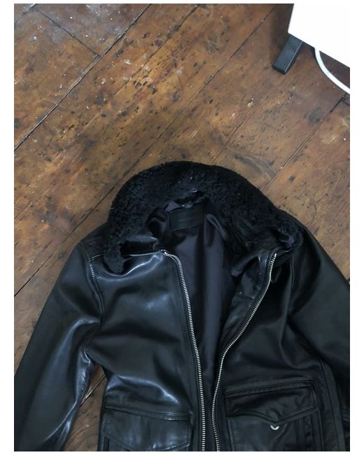 all saints leather jacket. Jacket is in perfect condition, no wearing. Has a detachable Borg black collar. Has two inside pockets and two front pockets with side pockets to. Slim fit.
