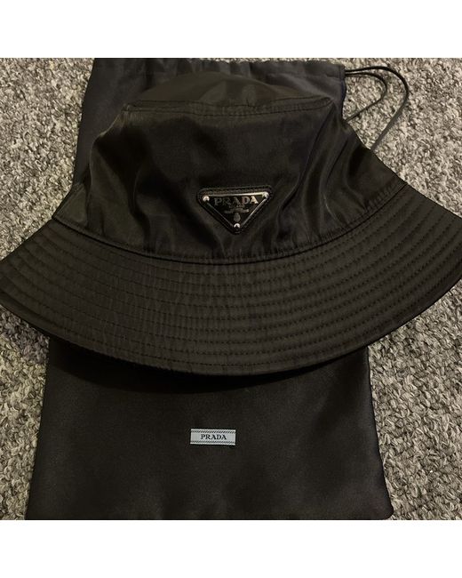 Made from high-quality nylon material, it is durable and lightweight. Its sleek design and black colour make it suitable for any occasion, from casual outings to formal events. Upgrade your accessory collection with this Prada Re Nylon Bucket Hat.