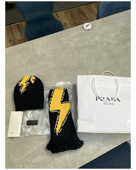 This Prada Lightning beanie is for men in size M. It is black in colour, featuring a stylish design with the PRADA brand. 2019 collection HAT ONLY SCARF IS NOT INCLUDED Scarf IS LISTED SEPERATLEY Purchased directly from Prada. RARE