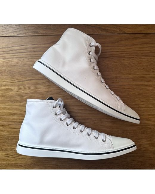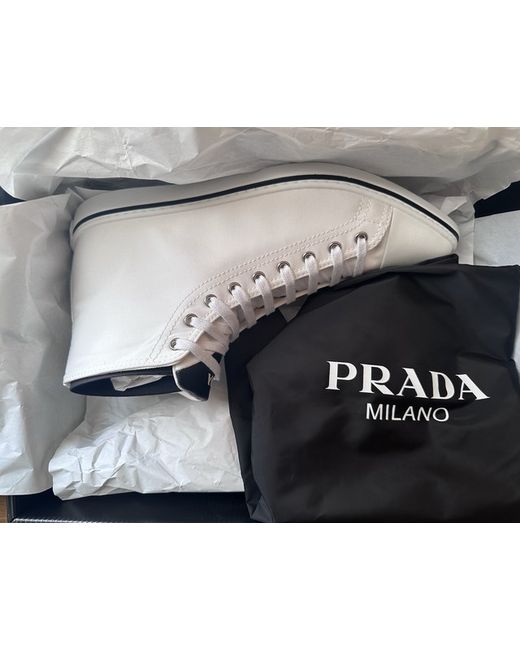 Prada pointy pointed toe HI TOP trainers boots In white / black Colour, It wouldn’t be PRADA without a playful twist on the classic, so these sneakers are branded on the back with a pointed toe. Hi-top canvas uppers and a rubber sole. Size U.K. 7.5 USA 8.5 EUR 41 CALZATURE UOMO ART. 2TG 177 COLOUR BIANCO GROUP NAME GABARDINE *2TG177 GUD F0009 6 99 C093 20 5759 D CA01 20 5566 A 8057716343626 Brand new condition with the original shoe box. Come with one dust bag. Ex display in the shop.