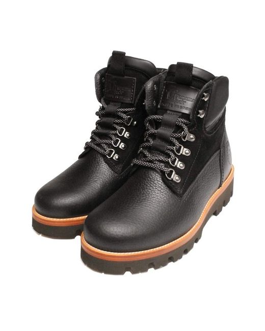 Heavy duty black leather walking boots by Panama Jack with warm igloo lining throughout. Panama Jack. High quality tumble grain leather upper with suede top panel and padded leather collar. Made on a durable and non-slip chunky black rubber sole with 40mm heel.