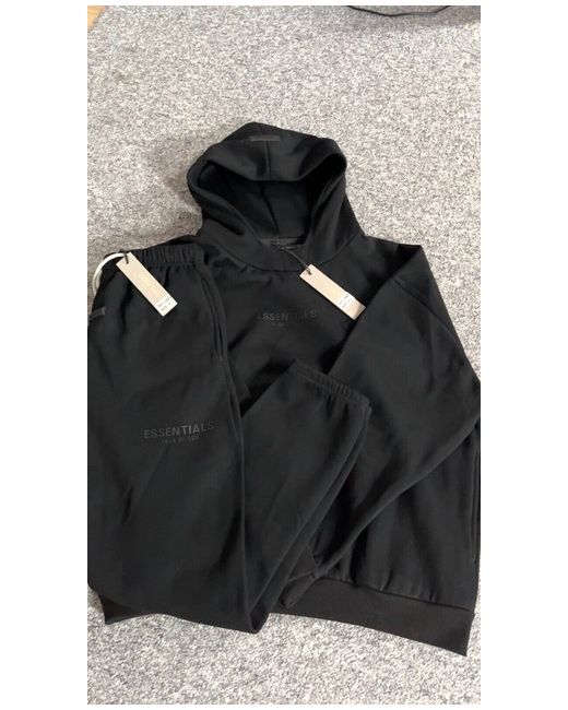 Brand new Accepting offers Size small but can fit a medium Crafted for comfort and style, this Essentials tracksuit set is a versatile addition to any active wardrobe. The set includes a snug hoodie and matching trousers, both presented in a timeless black colour