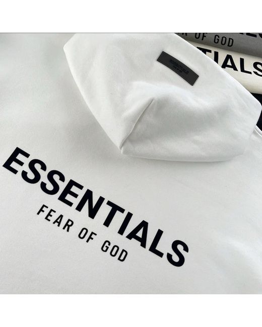 This Essentials Hoodie Jumper in white, size L, is a versatile and comfortable addition to any man's wardrobe. Made from cotton, this long sleeve pullover features a round neck, hooded design, and is machine washable for easy care. Perfect for the winter season, this hoodie from the brand Essentials is a classic, essential piece for everyday wear.