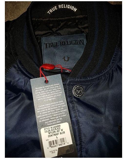 TRUE RELIGION CONTRAST SLEEVE NYLON MENS JACKET Mens Bomber Lightweight fabric100% nylon Imported SIZE -L