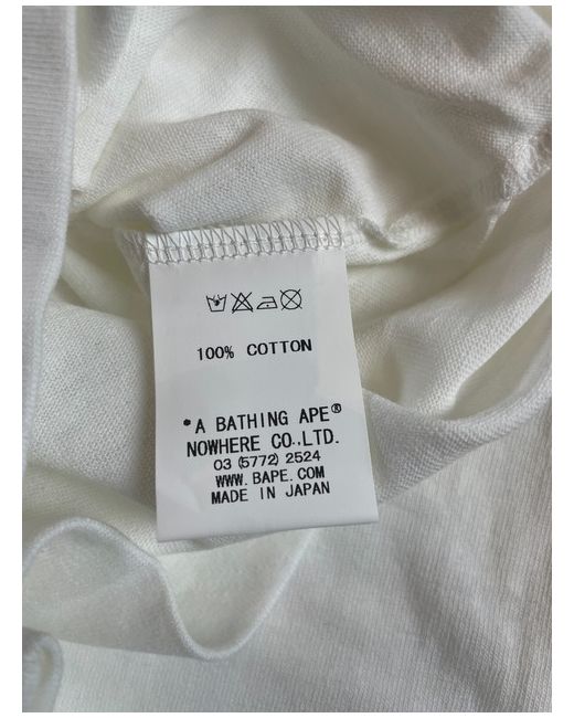 Features bold navy "BAPE®" vertical text and contrast ribbing on collar and sleeves. Crafted in Japan with a heavier-weight cotton and ringer construction, this is a serious collector's item from the golden era of A Bathing Ape.