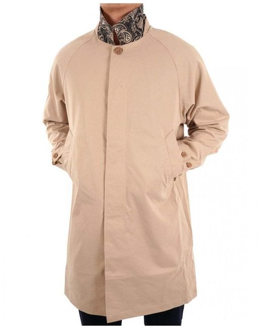 Embroidered Pretty Green signature logo. Paisley lining. Internal pocket. Adjustable cuffs. Made from: Shell: 100% polyester / Lining: 100% cotton. Front welt pockets. Concealed button up fastening. Point collar with paisley print on the underside.
