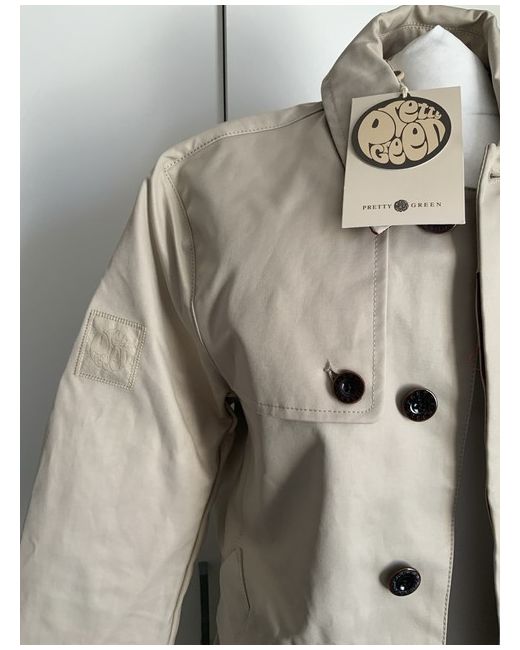 Crafted from a mix of cotton and polyester that is lightweight. Cuffs adjusters are also present. - Mod point collar. Pit to Pit flat: 18.5 in / 47cm. - Colour: Stone, Beige. - Pretty Green logo badge to the right sleeve.