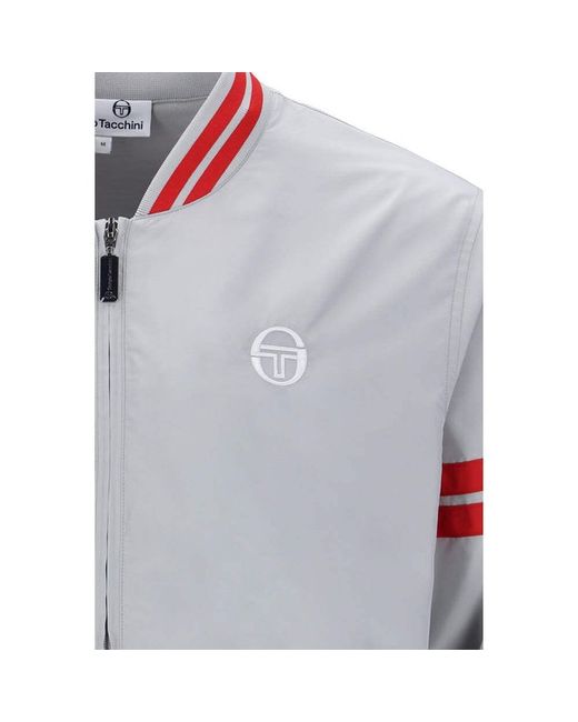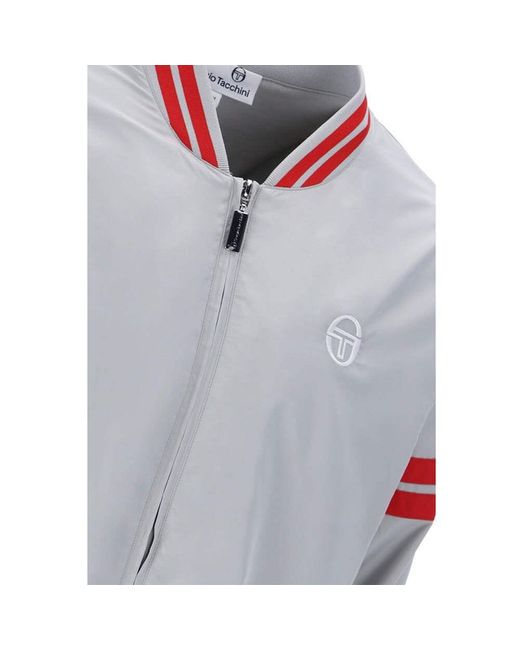 Sergio Tacchini Grello Bomber Jacket High Rise Grey and Adrenaline Red Add a touch of style to your wardrobe with the Sergio Tacchini Grello Bomber Jacket, perfect for those who value both comfort and flair.