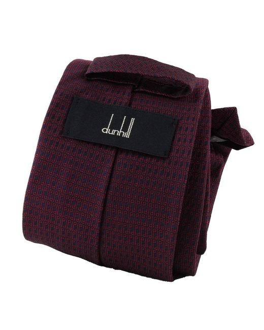 Dunhill Tie Dunhill Woven Longtail d Repeat Patterned TieColour: Burgundy and navy blueMaterial: 100% silkBlade width: 8 cmDunhill luxurious woven silk tie in a repeat Dunhill longtail d logo pattern.
