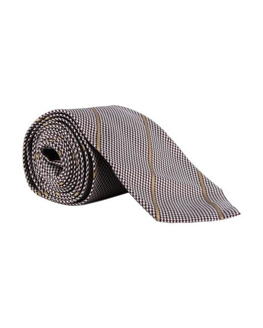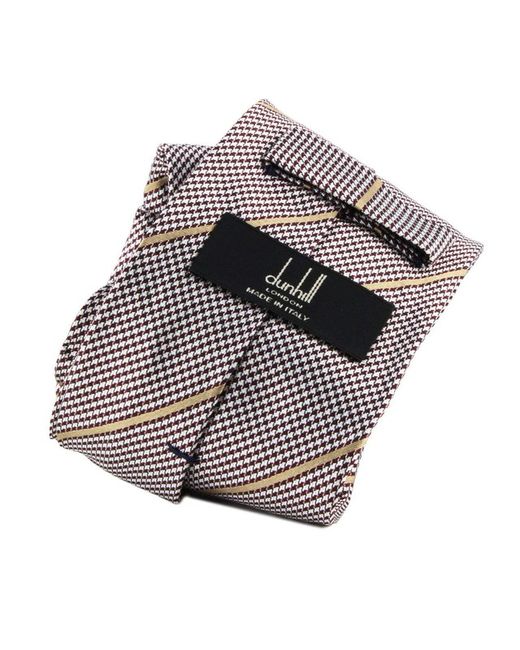 Dunhill Tie Dunhill Houndstooth & Stripe Patterned TieColour: Claret, white and beigeMade in italyMaterial: 100% silkBlade width: 8 cmDunhill fine houndstooth and stripe patterned silk tie. Dunhill Houndstooth & Stripe Patterned Tie.