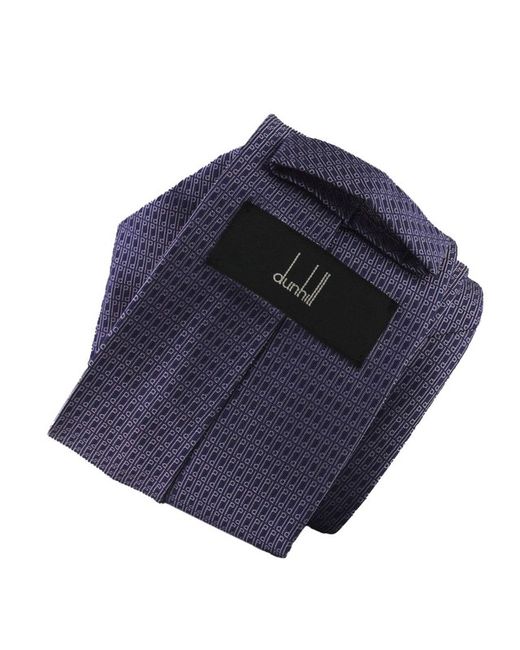Dunhill Tie Dunhill Woven Repeat d Patterned TieColour: Navy blue and lilacMade in the UKMaterial: 100% mulberry silkBlade width: 8 cmDunhill luxurious woven mulberry silk tie in a repeat Dunhill longtail d logo pattern.
