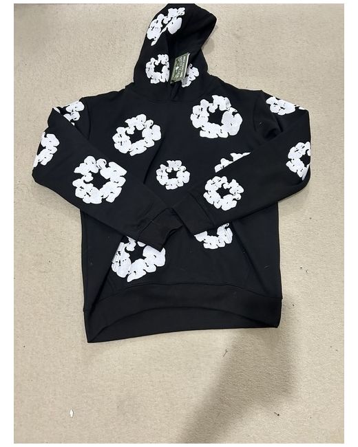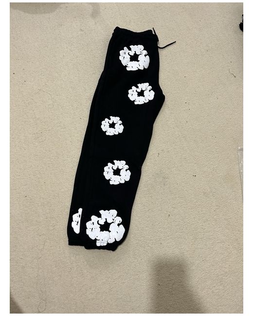 This black Denim Tears tracksuit in size L is a 2-piece sweatsuit made of cotton denim fabric. It features a logo accent and is suitable for activewear. The brand is DENIM TEARS, and it is designed for men in a regular fit style.