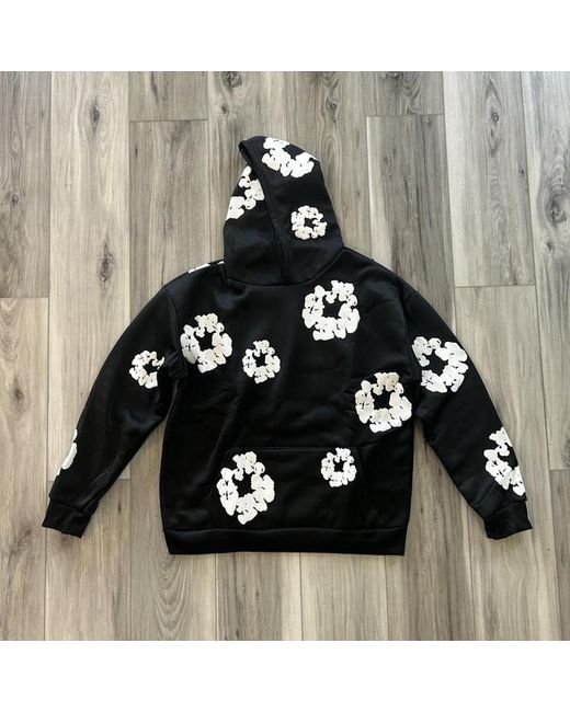 Medium black and white Denim tears hoodie with packaging and receipt for a captivating price.