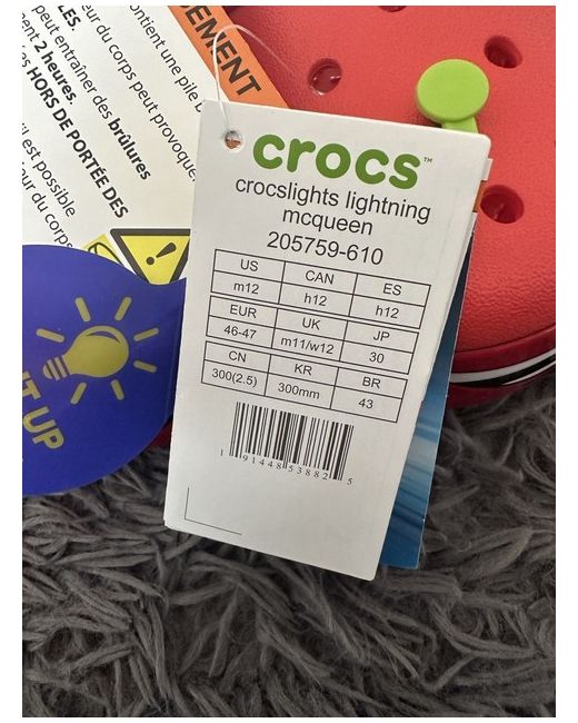Brand new and authentic lightning McQueen crocs UK 11 mens