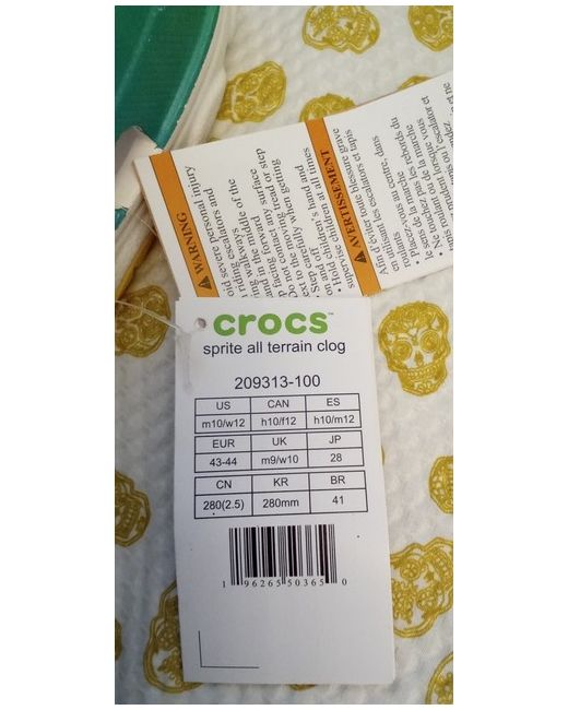 Elevate your summer footwear game with these rare Crocs Coca-Cola Sprite All Terrain Clogs Sandals. Slip into comfort with the adjustable ankle strap and breathable features. The multicoloured Coca-Cola Sprite character accents add a playful touch to these men's size 9uk sandals. Perfect for casual occasions in any season, these rubber sandals are a must-have addition to your wardrobe. The Crocs sprite all terrain Clog product line ensures durability and quality, with a rubber outsole and lining material. Made in China, these clogs are customised with the Crocs logo.