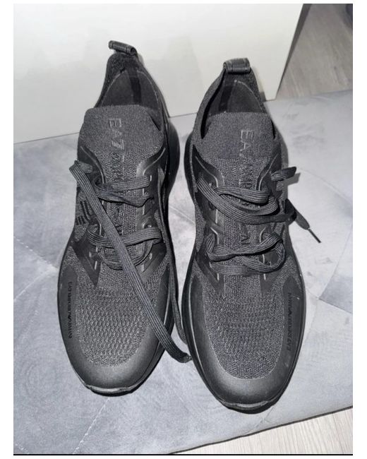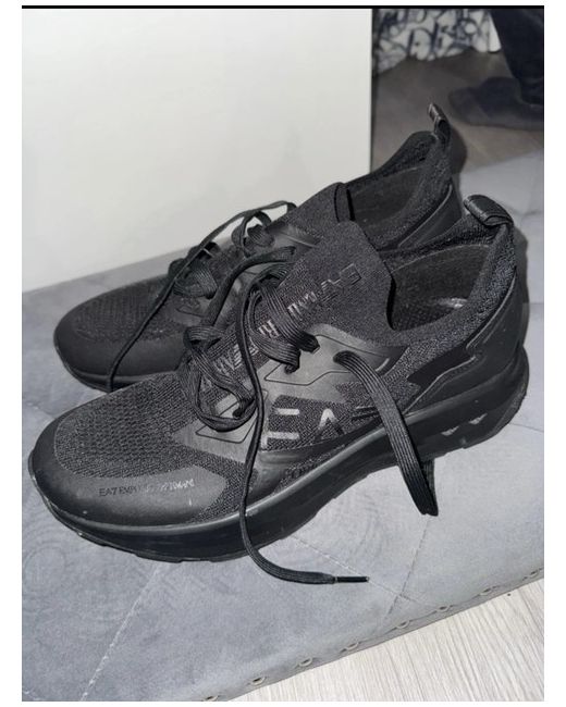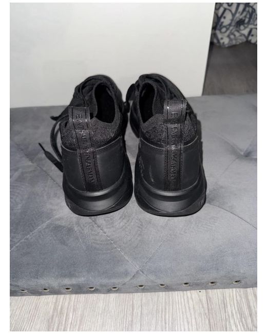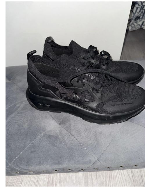 This is a new pair of Armani trainers in black, size 10. They are men's sneakers with a sleek and stylish design. They unfortunately don’t fit my partner paid RRP £200