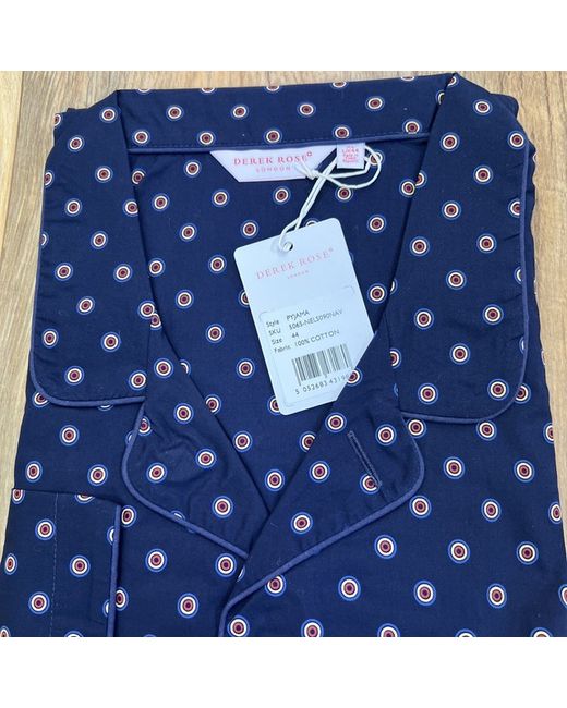 Mens Derek Rose Cotton Pyjamas. Jacket is button-through and features a 3-pocket jacket, classic collar and adjustable 2-button waistband The pyjamas are pure cotton and machine washable. Condition is "New with tags".