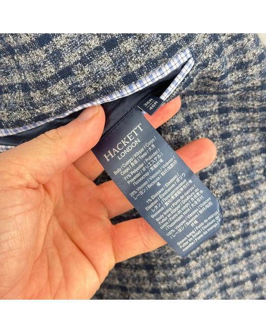 NWT Hackett Boucle Blue Grey Check Country Wear Blazer Jacket Size 36R RRP £345 Stunning textured luxury tailored jacket perfect for weddings or a day at the races Measurements Pit to pit 20” Shoulder to sleeve 25” Shoulder to shoulder 17” Collar to hem length 30"