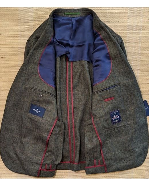 This Hackett London jacket is a must-have for any stylish man. The green check pattern adds a touch of modernity to the classic design. This blazer is available in three sizes and has a regular fit.