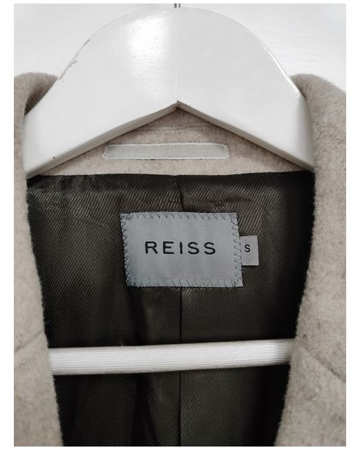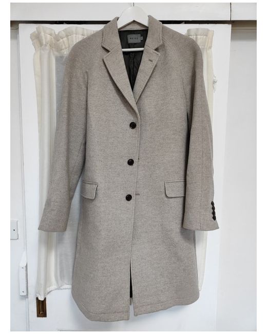 This Reiss men's coat in size S is crafted from wool in a classic beige colour. It is an overcoat style, perfect for a stylish and sophisticated look. This brand new item with tags is a must-have for any wardrobe, offering a timeless and versatile piece for various occasions.