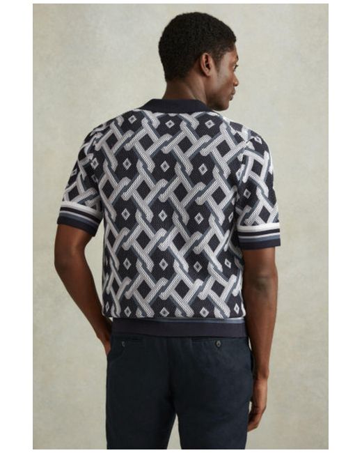 Beresford Knitted Cuban Collar Shirt Top Blue Multi XL