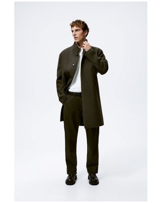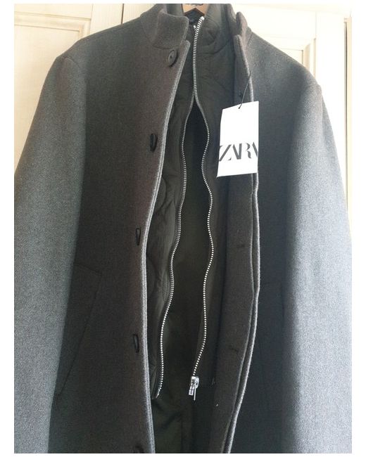 Zara mens coat Size large Green Detachable interior Wool blend Arms pit to pit is about 23 inches. Brand new with tags.