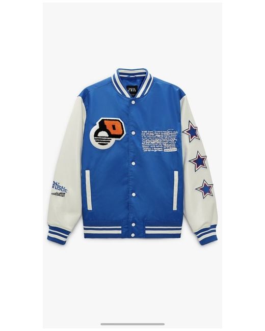 zara mens contrast patch jacket size L colour blue.