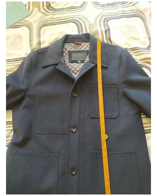 Shell 41% Wool, 52 Polyester, 7% Other Fibers. Lining 100% Polyester. Colour is more like black but the style number says office blue. Bust to bust is 22".