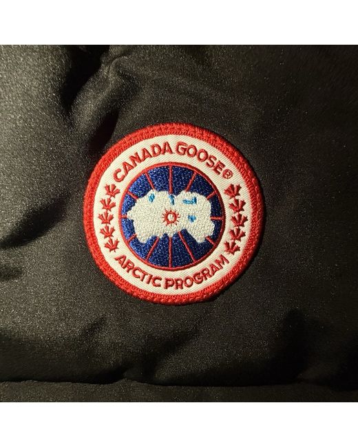 The Canada Goose Men's Jacket is a high-quality, designer parka crafted from softshell polyester with a warm down insulation. This heavyweight jacket in black features a zip closure, logo accents, and is perfect for casual occasions in winter. Made in Canada, it is ideal for walking and cold weather activities, offering both style and functionality for the fashion-conscious man.