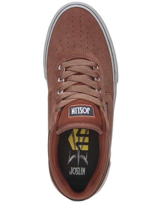 Etnies Joslin Vulc trainers in rust features Etnies Plant a Tree and ProFoam1 insole. Also features a vulcanised sole. Made from rubber suede and synthetic. Etnies logo. Woven Etnies label. Vulcanised sole.