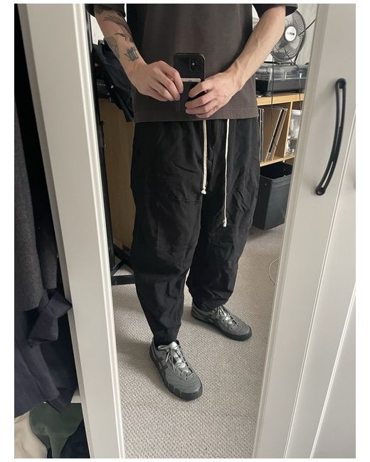 CDG BLACK polyester barrel fit cropped trousers. These are size XL bit fit any waist size. For reference I’m 5’11’’ W29 Brand new and never worn but without the tags, perfect condition. Any questions please ask.