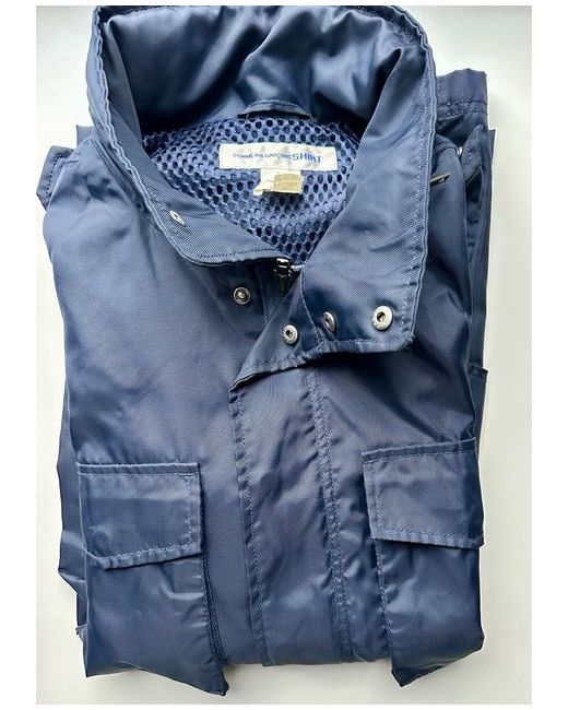 This stylish item from iconic brand COMME des GARÇONS is full of expertly designed touches, such as internal draw cord waist fastening and hidden rain hood in the collar. Featuring zip and pop closures to the front, plus side and breast pockets plus internal pocket. This fashionable piece is shower proof and is perfect for spring, autumn, and summer wear. Minimal wear and tear. Approximate measurements: Length 75cm Shoulder width 51cm Sleeve length 66cm