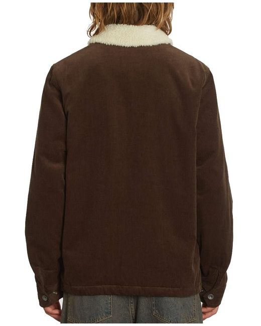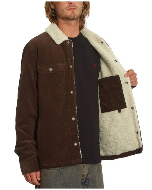 Volcom Keaton jacket in dark brown features a 4 pockets. Made with sherpa lining. Made from cotton and polyester. Volcom embroidered logo. Volcom woven label.