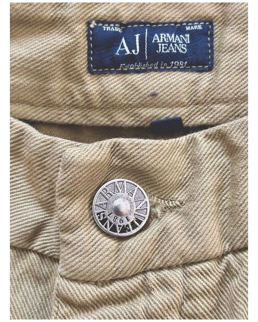 The product is a pair of men's Armani Jeans in a slim fit, tapered style. Made from denim fabric in a sand colour, these jeans have a regular size type with a waist size of 32 inches. The size 48 (EU) makes it suitable for a regular fit for men looking for a stylish and comfortable pair of jeans from the renowned Armani brand. 100% Cotton
