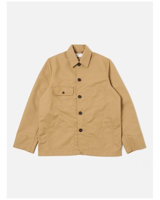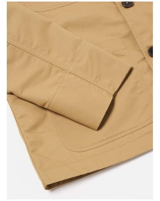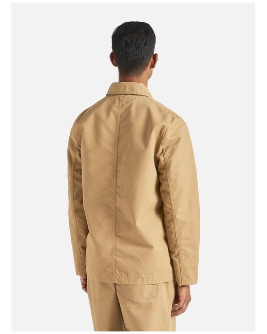 Four patch pockets one with a buttoned flap and deep cuffs. A tightly woven fabric giving a clean utilitarian look which is robust and holds its shape. A blend of 65% cotton and 35% recycled polyester fibres with a brushed surface to create a peach-like hand feel to the surface.