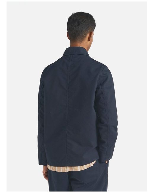Four patch pockets one with a buttoned flap and deep cuffs. A tightly woven fabric giving a clean utilitarian look which is robust and holds its shape. A blend of 65% cotton and 35% recycled polyester fibres with a brushed surface to create a peach-like hand feel to the surface.