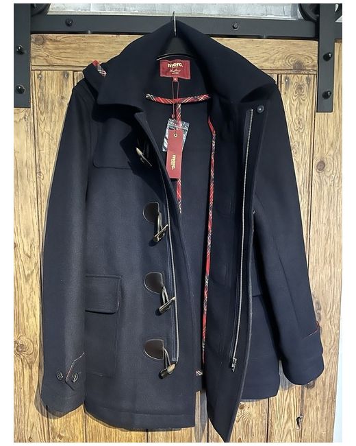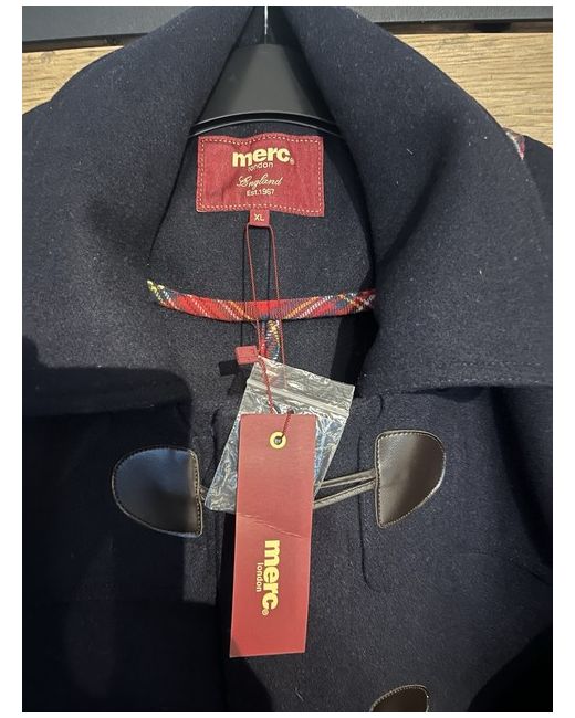 Wrap up in style with the Merc Duffle Coat, a timeless addition to your wardrobe that effortlessly combines warmth and sophistication. This coat, crafted from luxurious wool with a dark blue hue, offers both comfort and elegance for the discerning gentleman. Its size XL fits comfortably within the regular size range, ensuring a superb fit for a variety of body types. Attention to detail is evident in the classic duffle style, complemented by a distinctive tartan trim lining the interior. This piece is versatile enough for a casual day out as it is for more formal occasions, making it a must-have for those who appreciate a blend of practicality and timeless fashion.