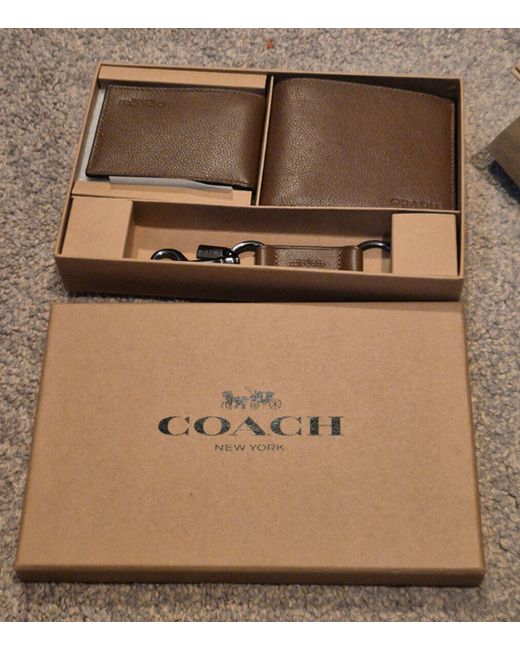Men's Brown Boxed 3 1 Compact Id Wallet With Trigger Snap Key Fob CS433