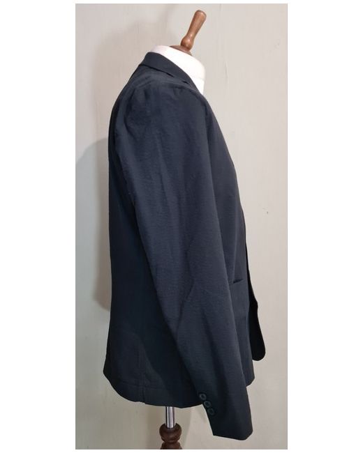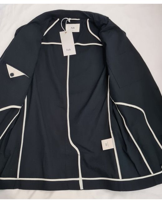 Folk Structured Seersucker Cotton Blazer Jacket. Composition - 98% Cotton, 2% Elastane. Length - 28" (from nape to hem). Shoulder - 17". Colour - Black.
