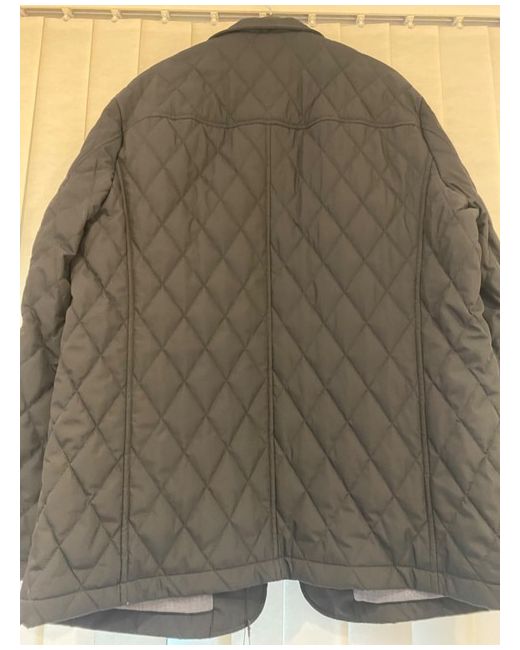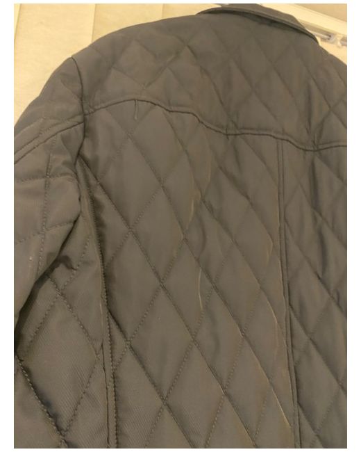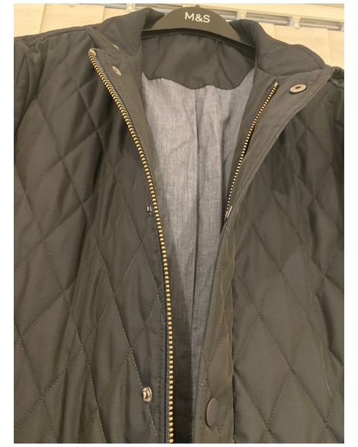 This quilted jacket features a stylish design with a padded exterior for extra warmth.