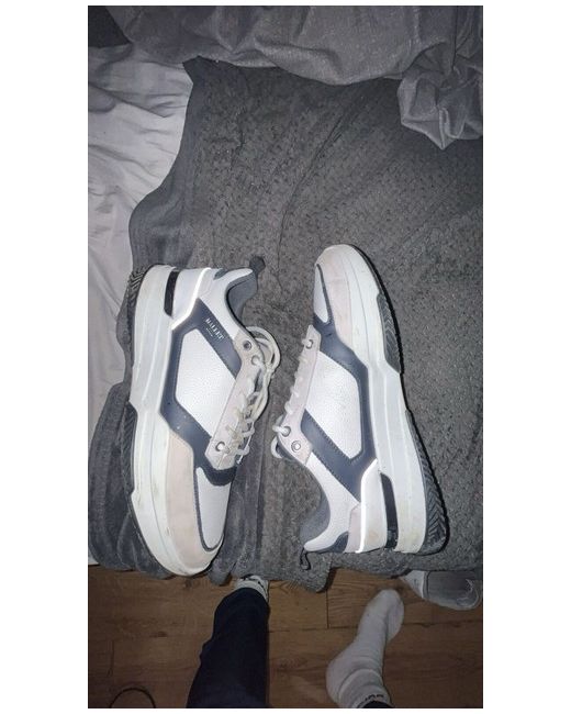 Mallet Radnor trainers - Super high quality end trainers Size 10. White and Navy with classic Mallet Silver metal tab on the back. Reflective lining strip on Back. RRP £195 originally purchased from Flannels. Includes high quality shoe bag, Unused Spare laces and Mallet special design shoe horn. I believe receipt can also be provided. Worn 3-4 times no permanent Marks/wear.