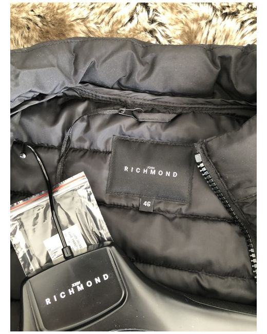 Size is IT46 / S. JOHN RICHMOND Black Puffer Jacket. Puffer jacket. Lining: 100% Polyester. Shell: 100% Polyester.