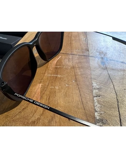 Superbly styled Porsche design sunglasses 100% original item. Black frames with lightly brown tinted lenses. Original boxes, lenses cloth & guarantee card. Never worn, totally unmarked Brand new condition. RRP £325.00
